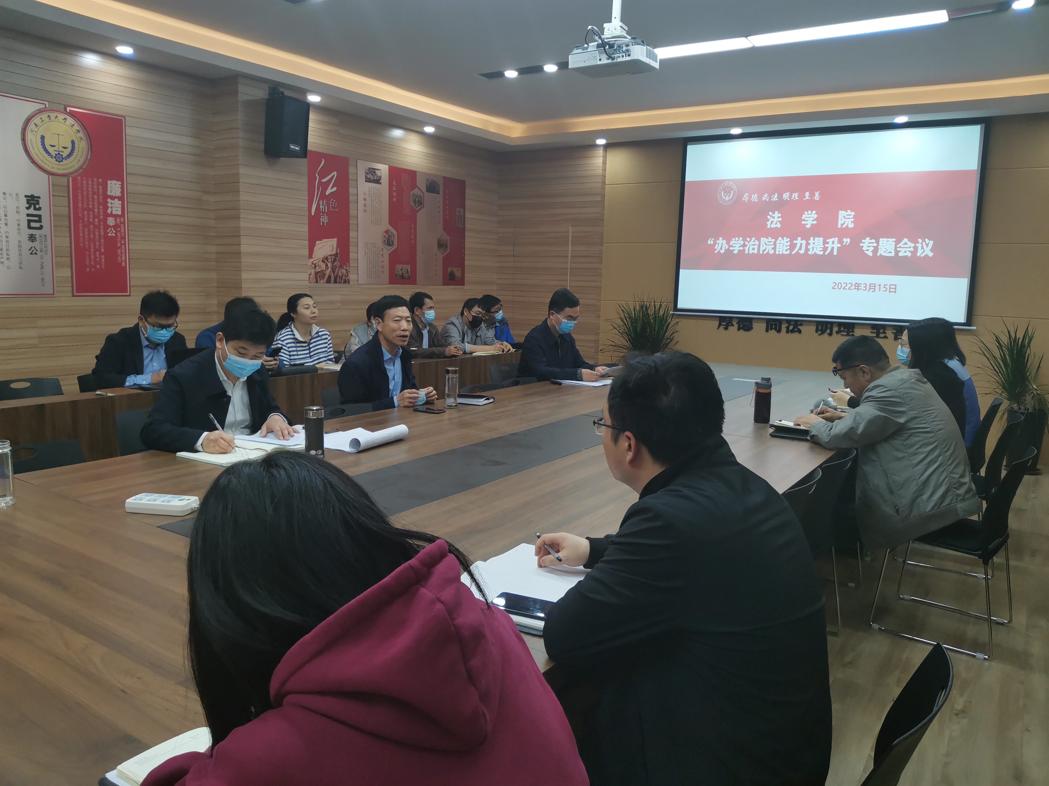为贯彻落实校人事分配制度改革精神,深入推进“能力作风建设年”活动, 3月15日,我院召开“办学治院能力提升”专题会议,学院全体教职工参加,党委书记陈从志主持。