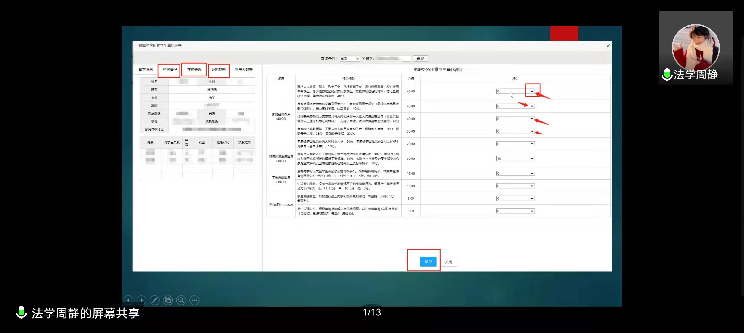 通过腾讯会议平台举行家庭经济困难认定工作。学院辅导员、资助工作人员以及各班评议小组成员参加会议。