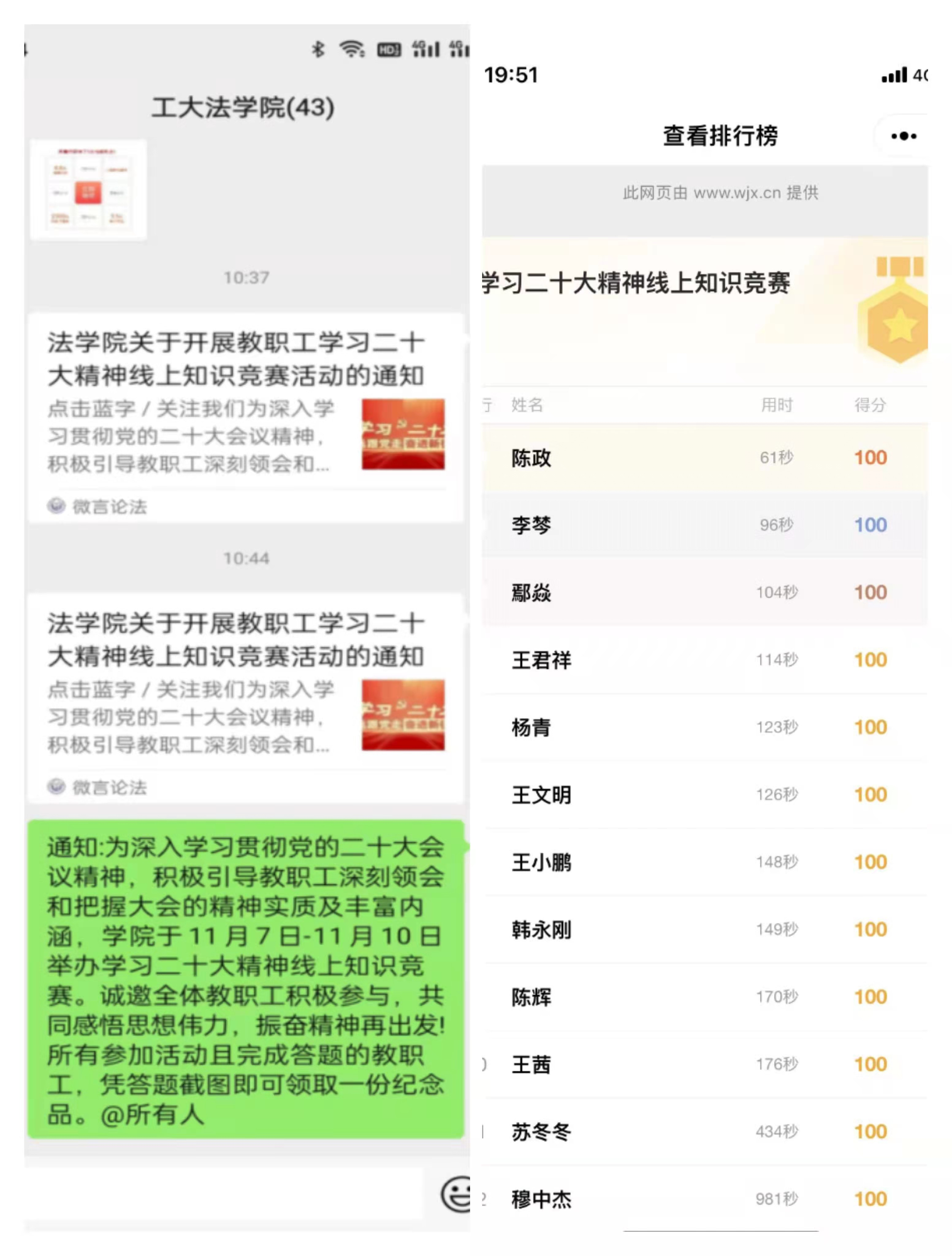于11月7日至11月10日通过网络平台开展了学习党的二十大精神理论知识竞赛活动。