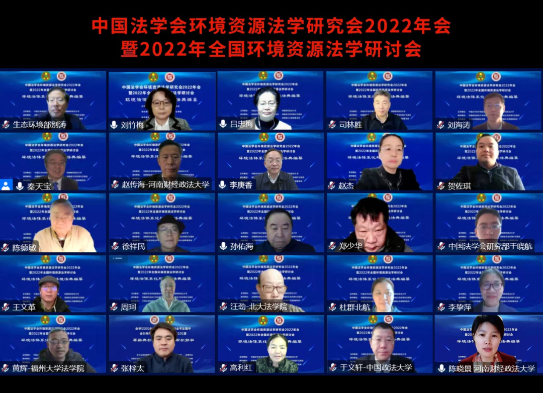 2022年12月17-18日,中国法学会环境资源法学研究会和河南财经政法大学共同主办的中国法学会环境资源法学研究会2022年会暨2022年全国环境资源法学研讨会(线上)顺利举行。来自全国人大法工委、最高人民法院、生态环境部、中国法学会等国家机关领导同志、全国环境资源法学界专家学者300余人齐聚云端。