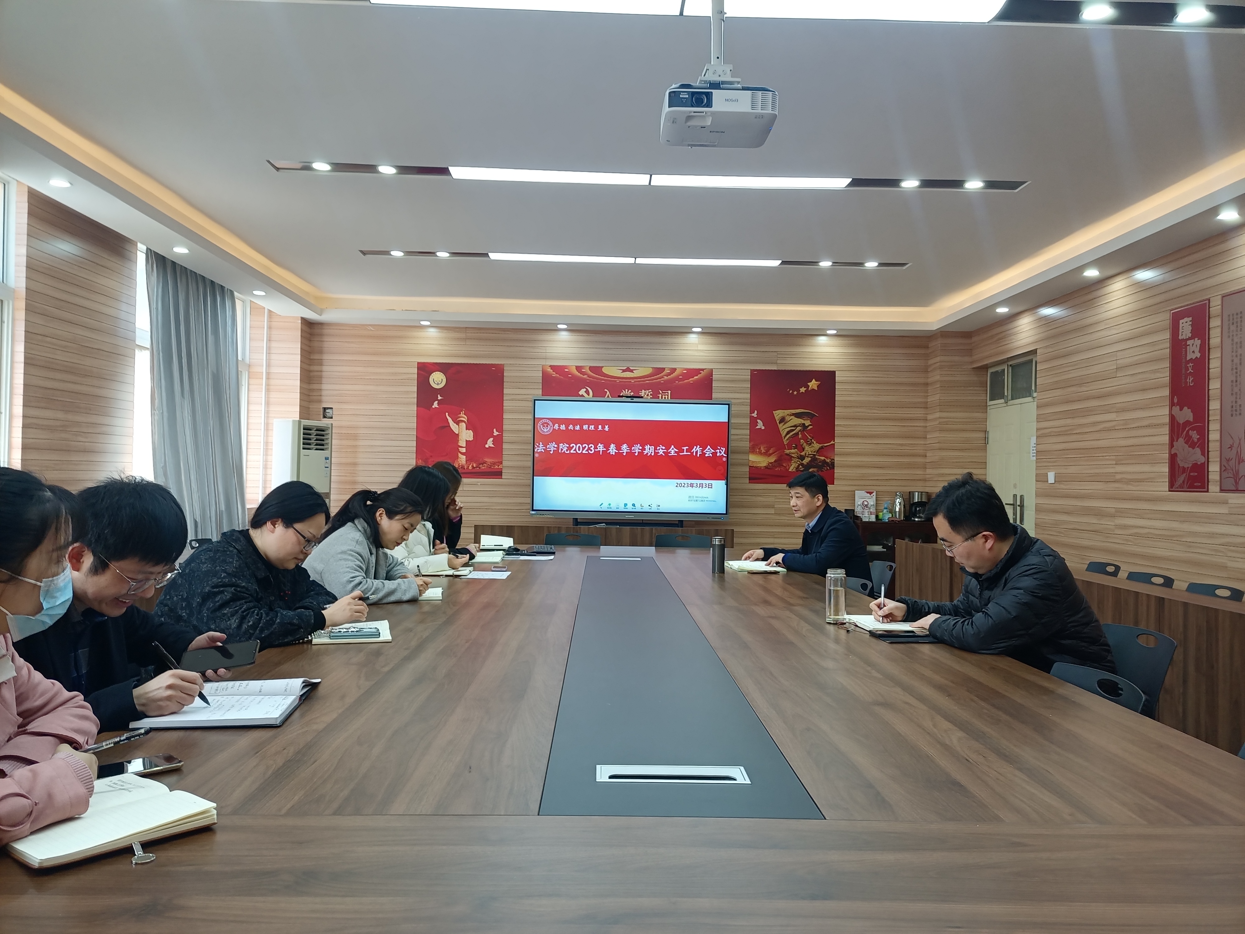 会上,许文传达了学校2023年春季学期安全工作会议精神,并对学院安全工作进行了部署。他指出,一是要树立“安全工作无小事”意识,始终把安全工作放在首位;二是要加强宣传教育,充分发挥学院网站、“微言论法”等平台的作用,切实提高师生的安全意识;三是要建立常态化的值班值守制度、查寝制度,完善应急处置方案,定期开展安全巡查,摸清家底,排除隐患。