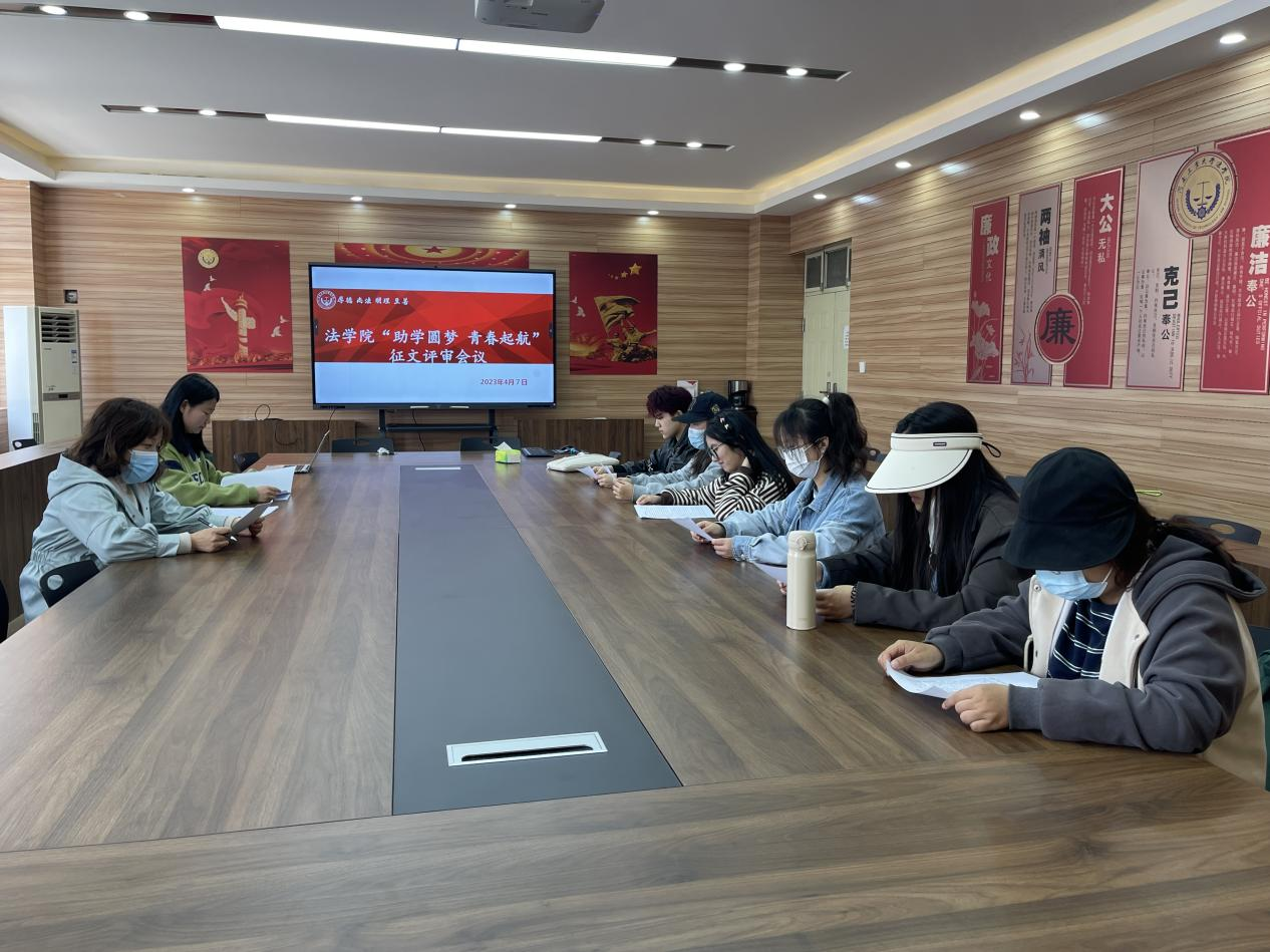 在3424会议室举行“助学圆梦、青春起航”主题征文作品评审会,学院负责资助工作的辅导员周静、资助专员及生活部成员参加会议。