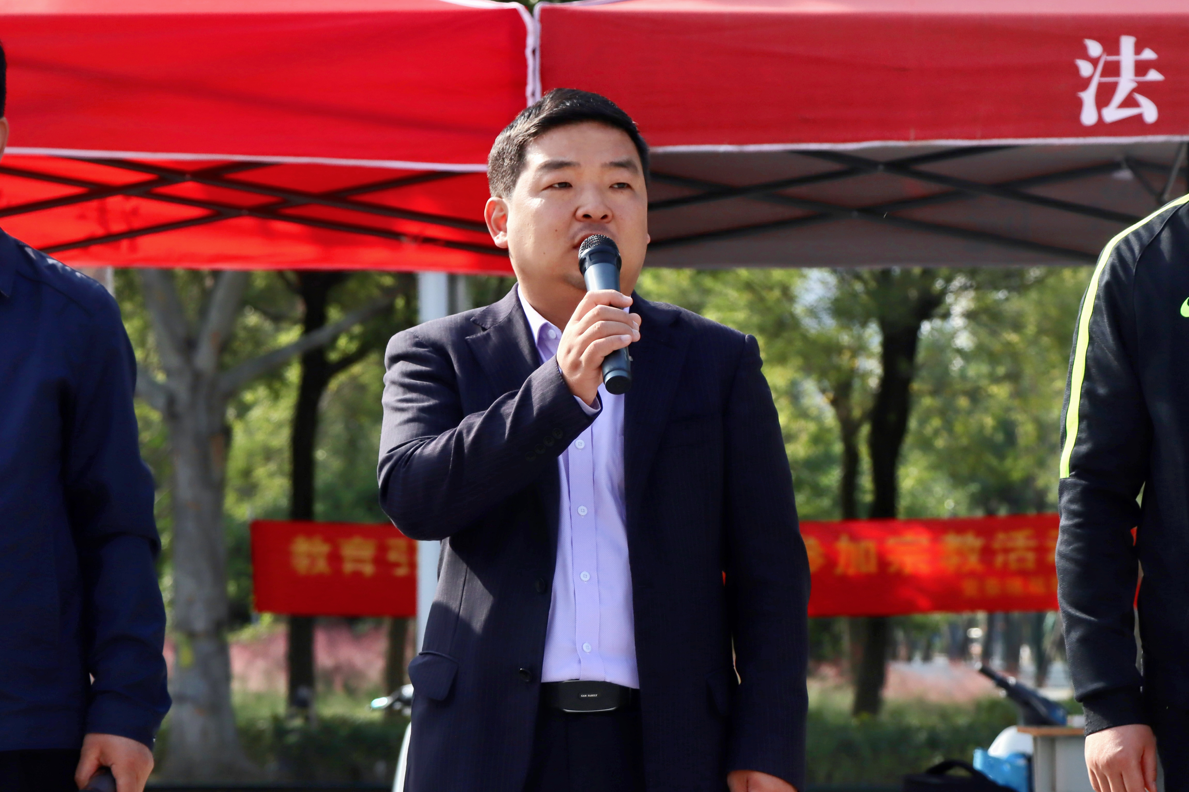 法学2205班付梦婷、2207班耿正作为学生代表发言,她们表示军训是增强国家安全意识、磨砺意志品质的重要课程,服从命令、听从指挥,以最饱满的热情参加军事训练与军事学习,保证安全顺利完成军训任务。