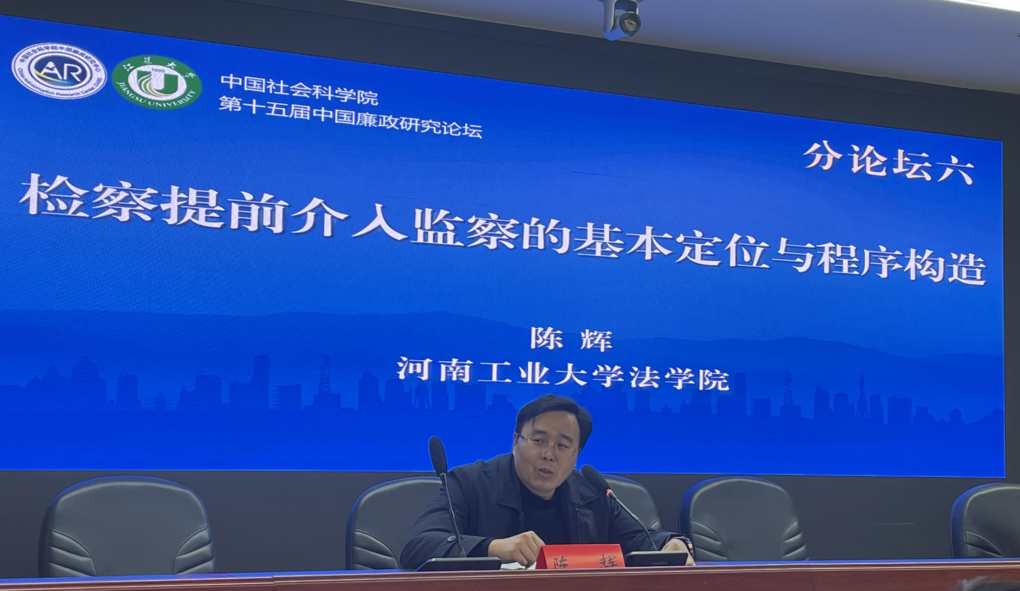 陈辉提交的《检察提前介入监察的基本定位与程序构造》一文被收入会议论文集之中,并在第六分论坛“廉政法治与中国特色纪检监察体制改革创新”主题阶段作了主题会议报告。河南省社会科学院纪检监察研究所所长万银锋研究员、扬州大学张謇研究院院长陆和健教授、江苏大学马克思主义学院李宏刚教授对陈辉的报告作了评议。
