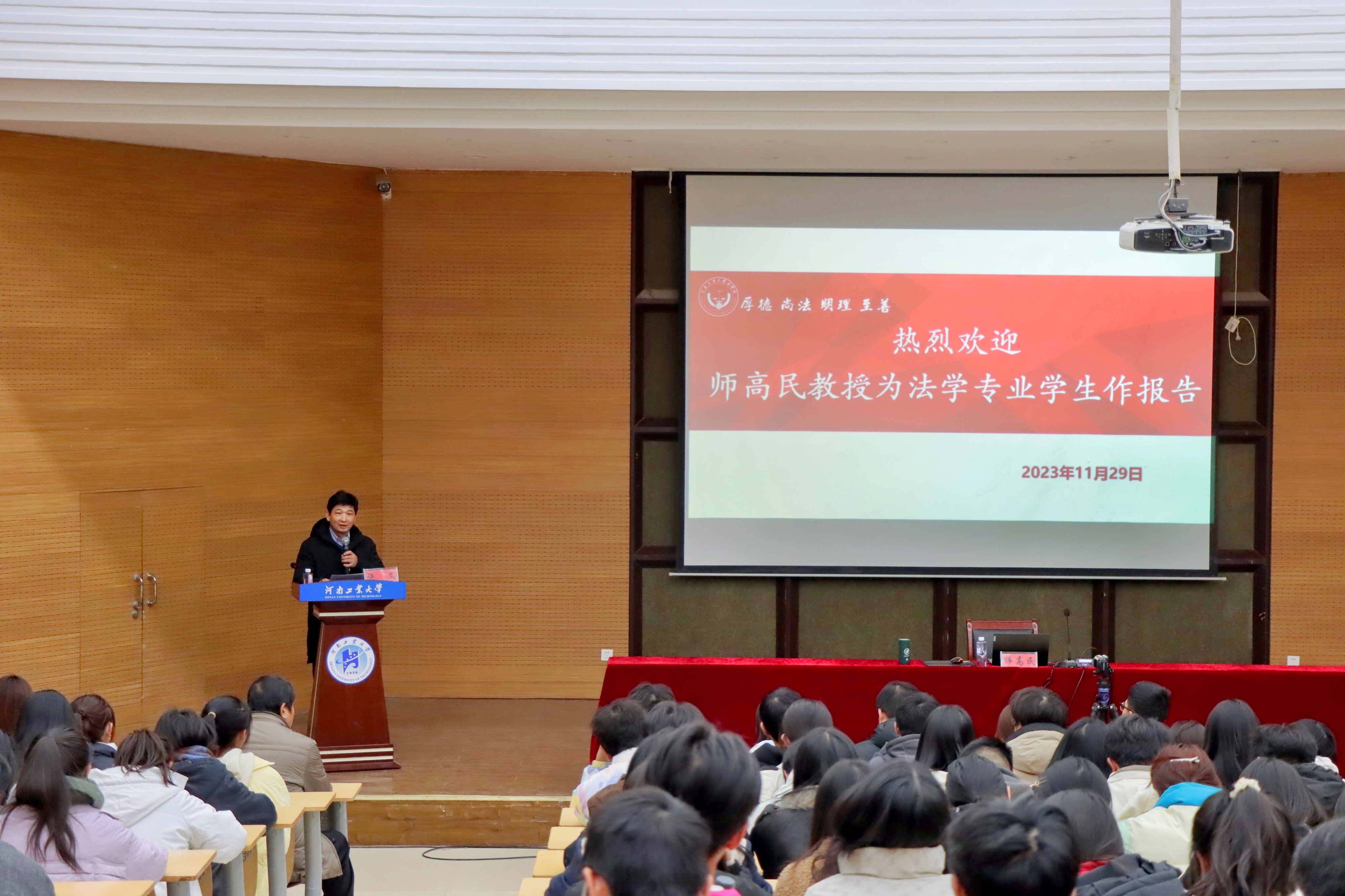 在嵩山路校区学术报告厅成功举办政法论坛第93期学术报告活动。邀请中国粮食博物馆名誉馆长、中国高校博物馆专委会常委副主任委员、河南省综合评标专家、河南省哲学社会科学规划项目评审专家师高民教授作题为“粮食安全与古代粮食法规”的学术报告。色情小说
