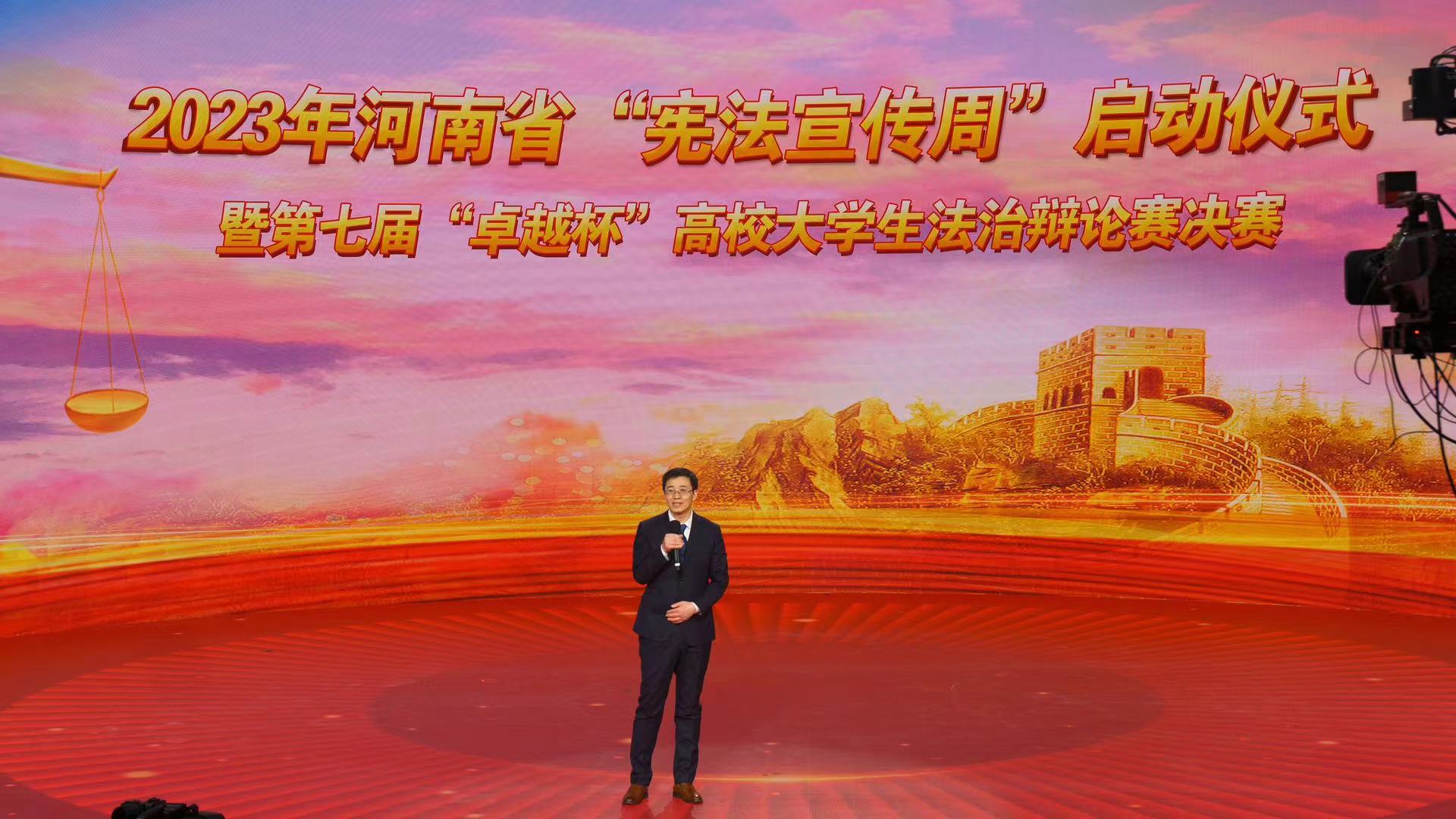 我校承办的河南省第七届“卓越杯”高校大学生法治辩论赛决赛,作为2023年河南省“宪法宣传周”启动仪式的重要组成部分,于12月1日在河南广播电视台600XR演播厅成功举行。活动由中共河南省委全面依法治省委员会守法普法协调小组、河南省司法厅、河南省教育厅、河南省法学会主办,色情小说