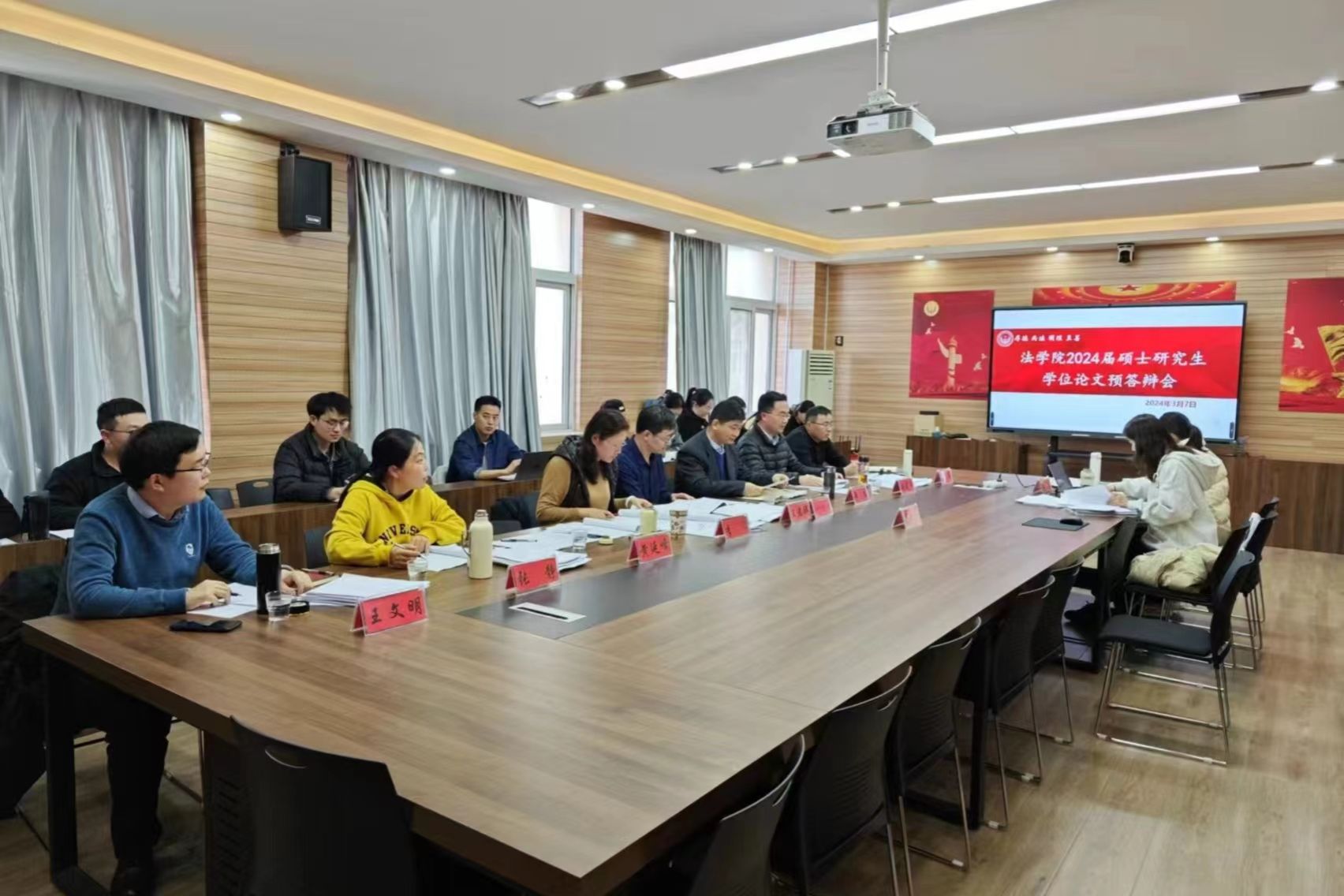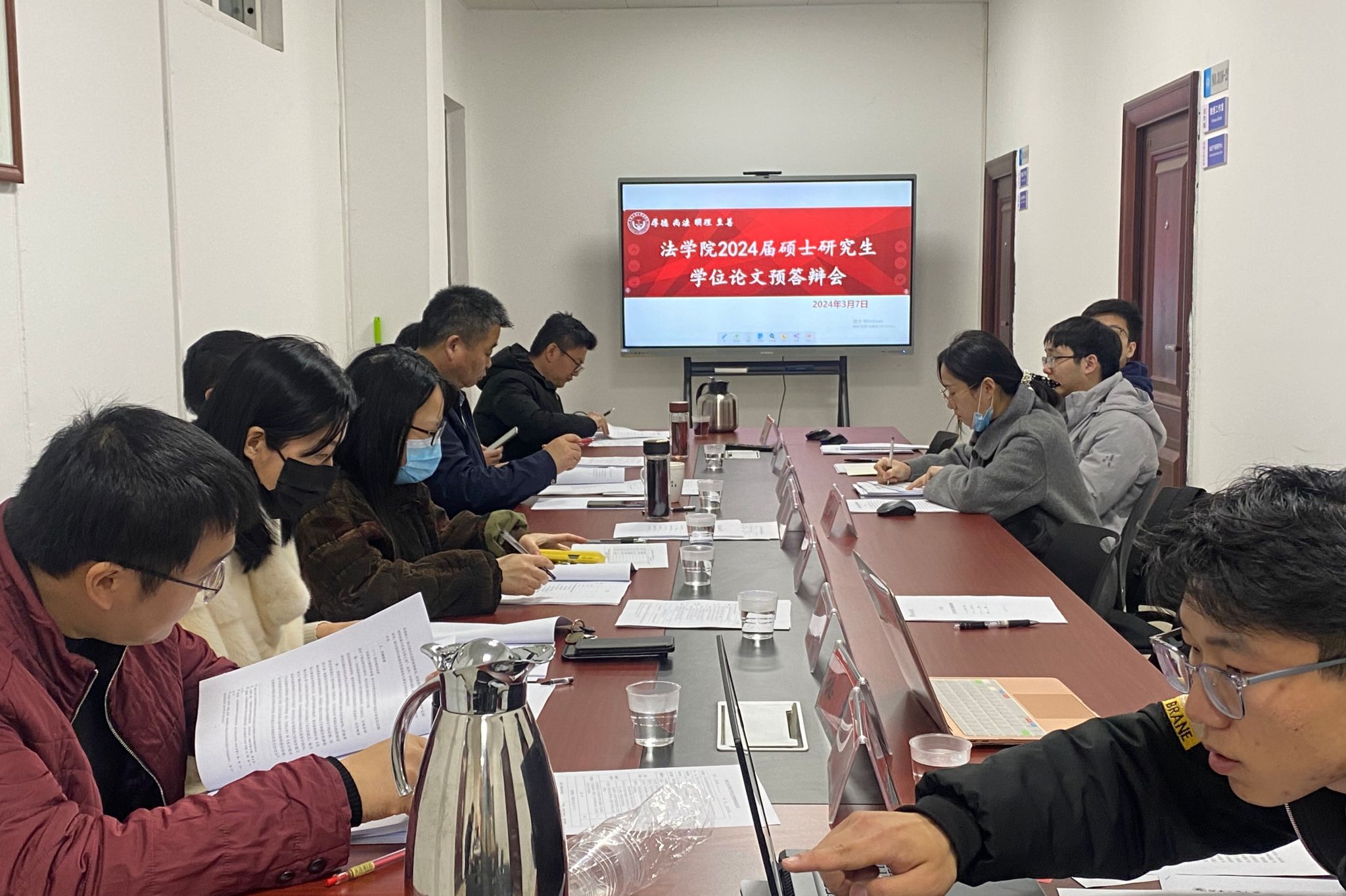 2024届硕士研究生学位论文预答辩工作安排》。预答辩会上,各组组长宣读了预答辩程序、介绍预答辩委员会成员,指出预答辩是加强研究生毕业论文质量过程管理的重要环节,希望同学们高度重视、珍惜机会,针对老师提出的问题进行深入思考,进一步修改完善论文,为论文后续工作做好准备。