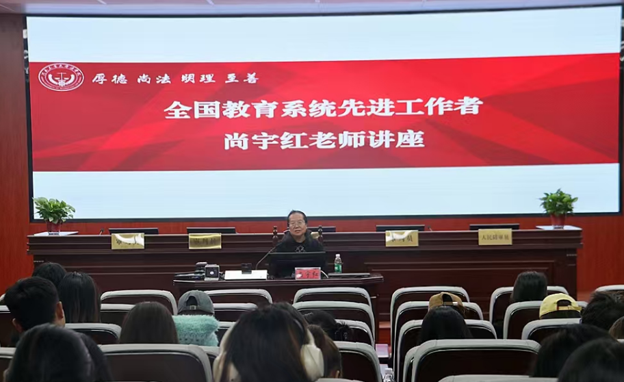邀请全国教育系统先进工作者尚宇红老师在模拟智慧法庭进行“朋辈润心,互助成长”心理专题讲座。学院全体心理骨干、学生干部参加,讲座由学院党委副书记张翠华主持。