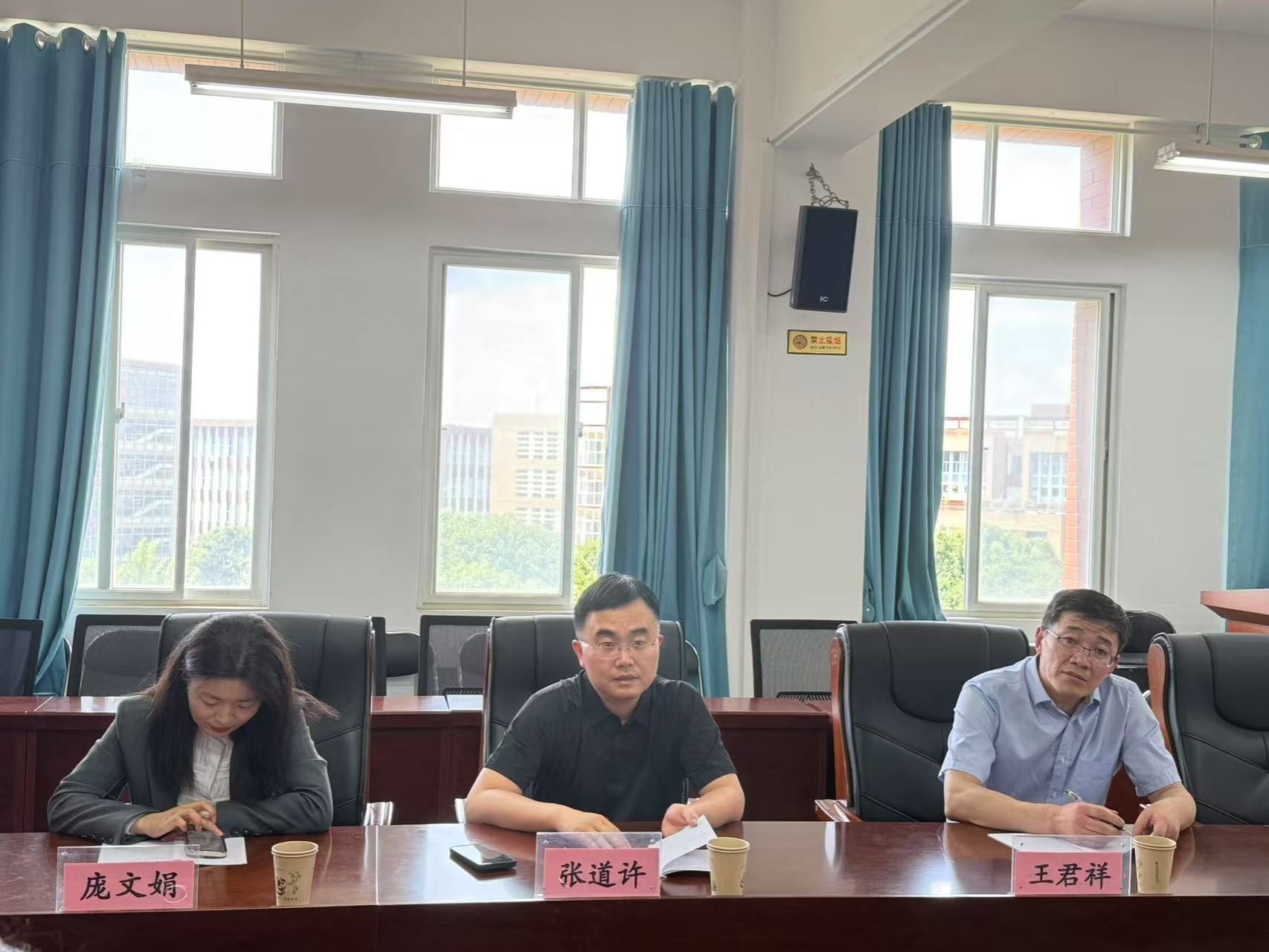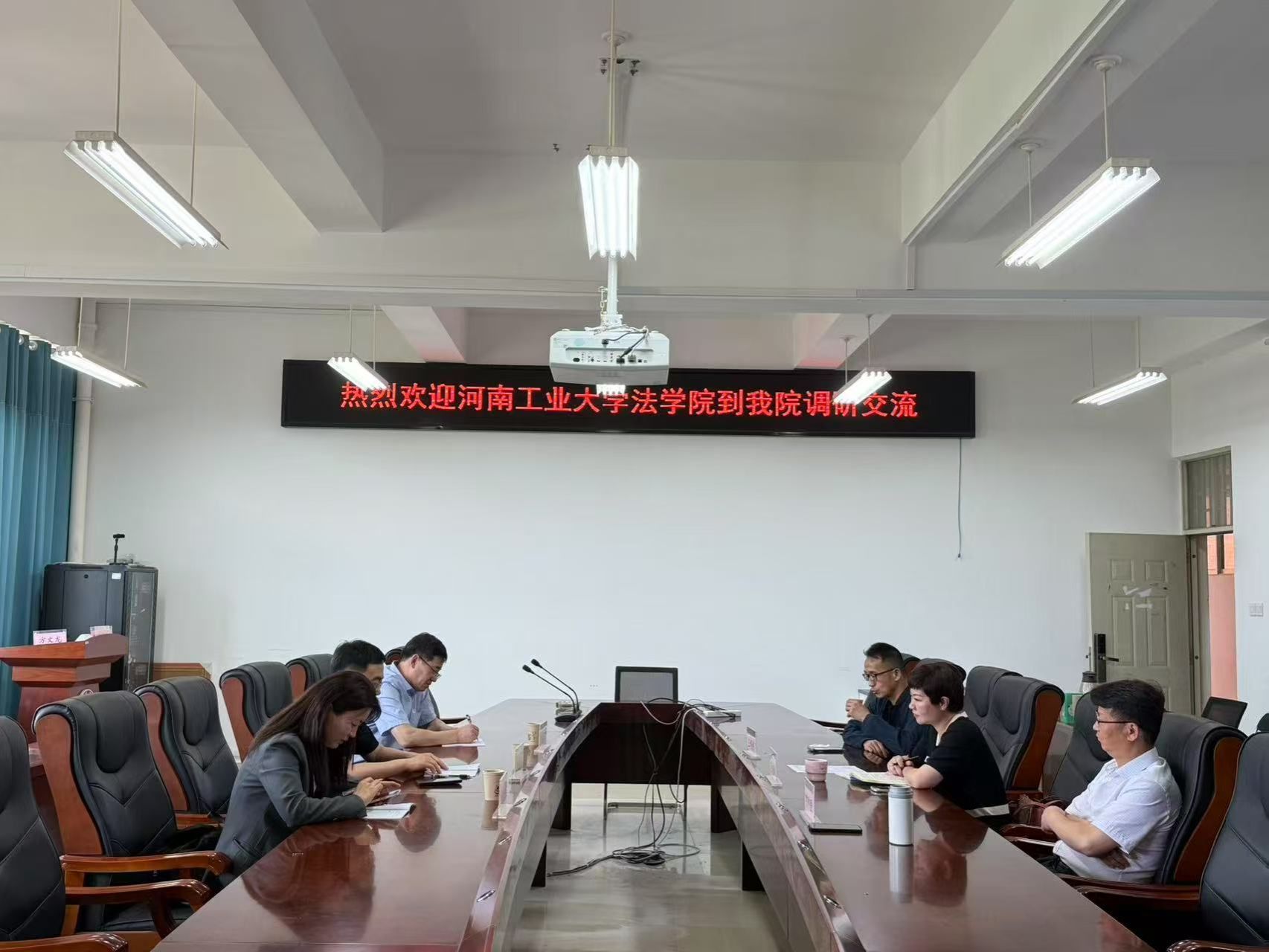 的办学历程,随后,王君祥、庞文娟分别就学院学科建设、人才培养、涉外法治人才培养、学术研究以及学生考研就业等情况进行了深入交流。双方围绕加深合作力度、携手开展科研攻关、强化人才培养协同、共同服务地方发展等议题展开热烈讨论,并达成多项重要共识。