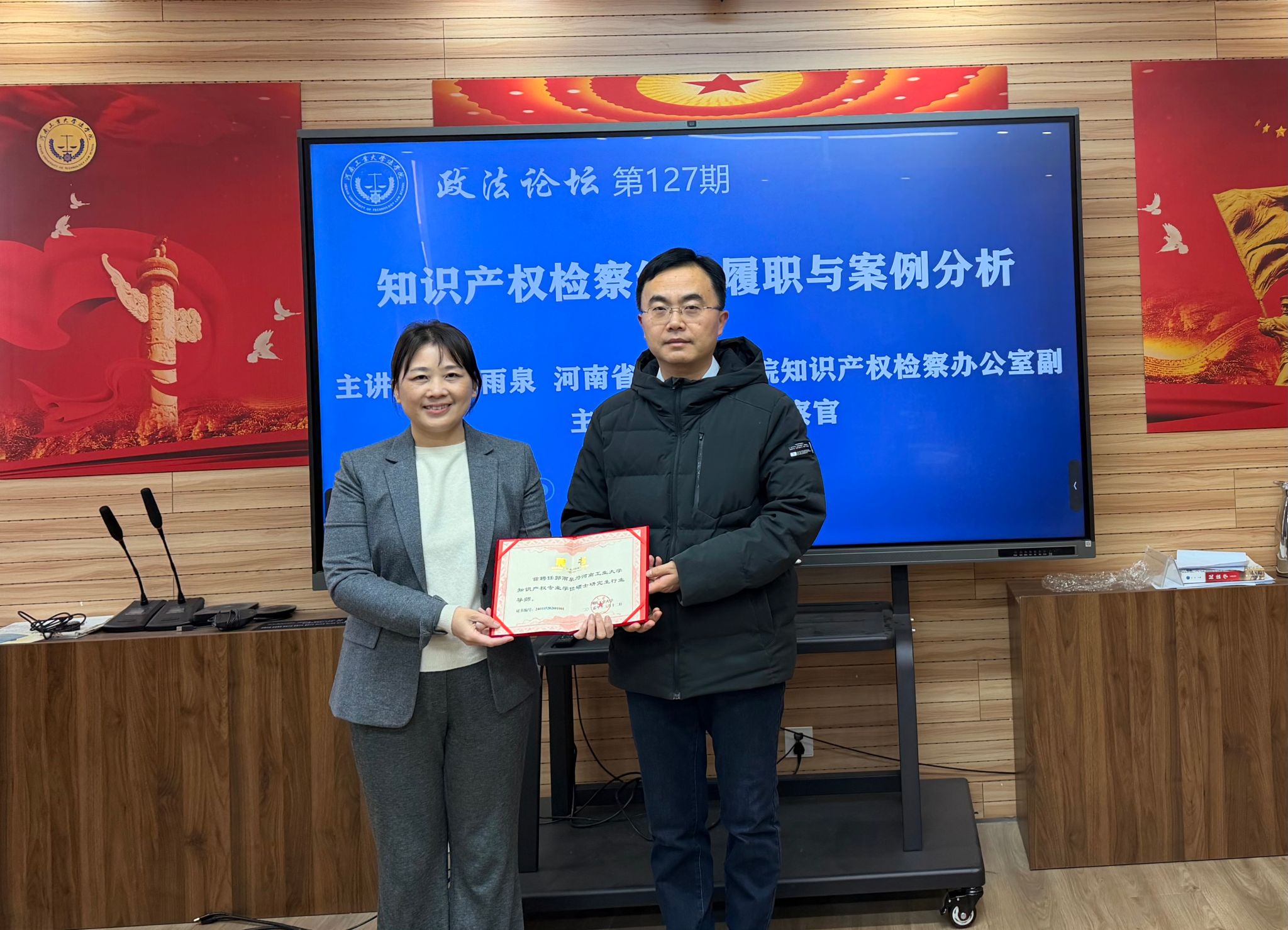 在3424会议室成功举办“政法论坛”第127期学术报告会。河南省人民检察院知识产权监察办公室副主任、三级高级检察官郭雨泉以“知识产权检察综合履职与案例分析”为主题开展了一场精彩而丰富的学术报告。报告会由色情小说