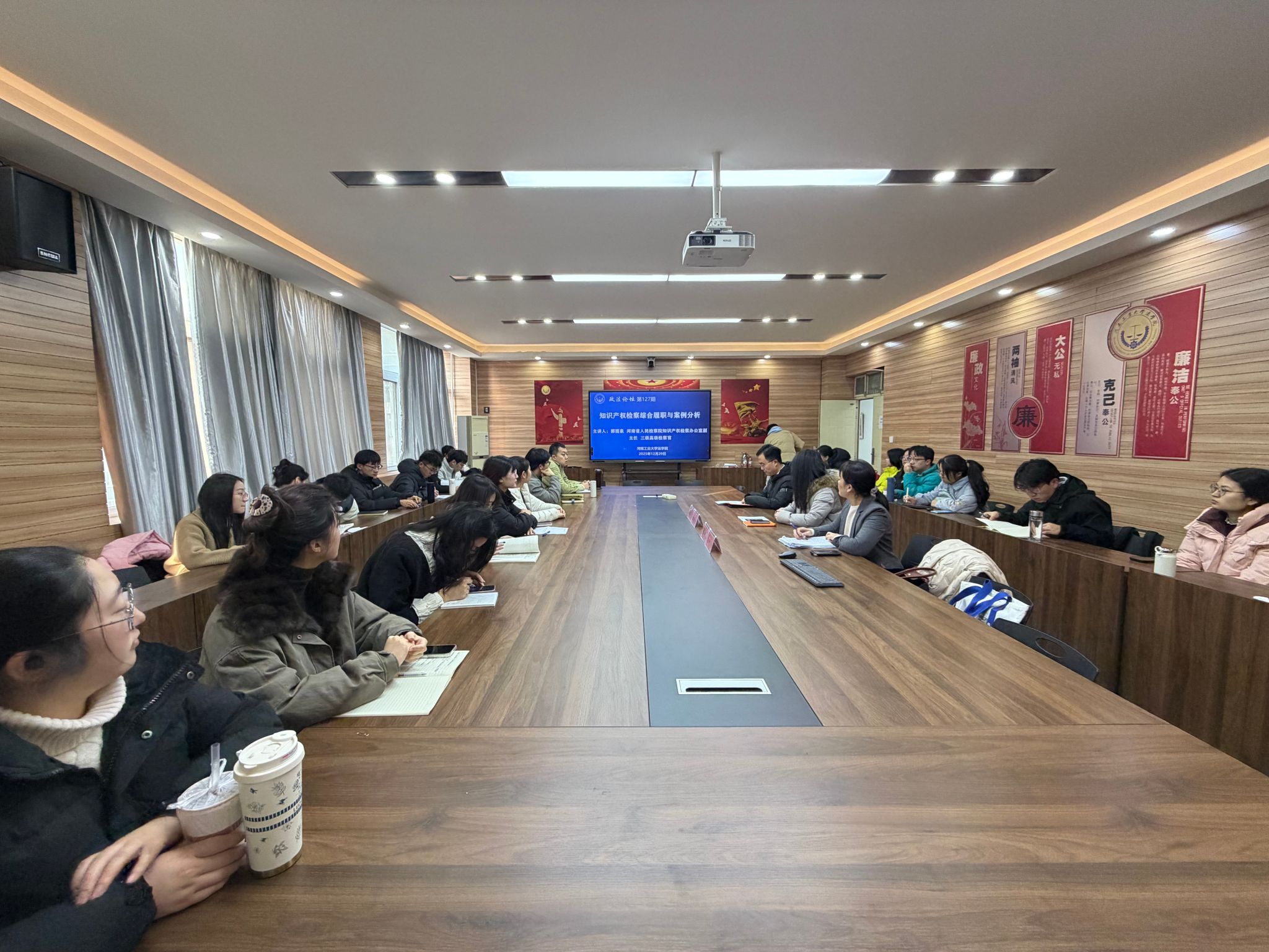 院长张道许教授、知识产权教研室教师以及本科、研究生50余人到场参会。现场师生围绕知识产权检察合履职及典型案例的实践展开深入交流,氛围热烈融洽。