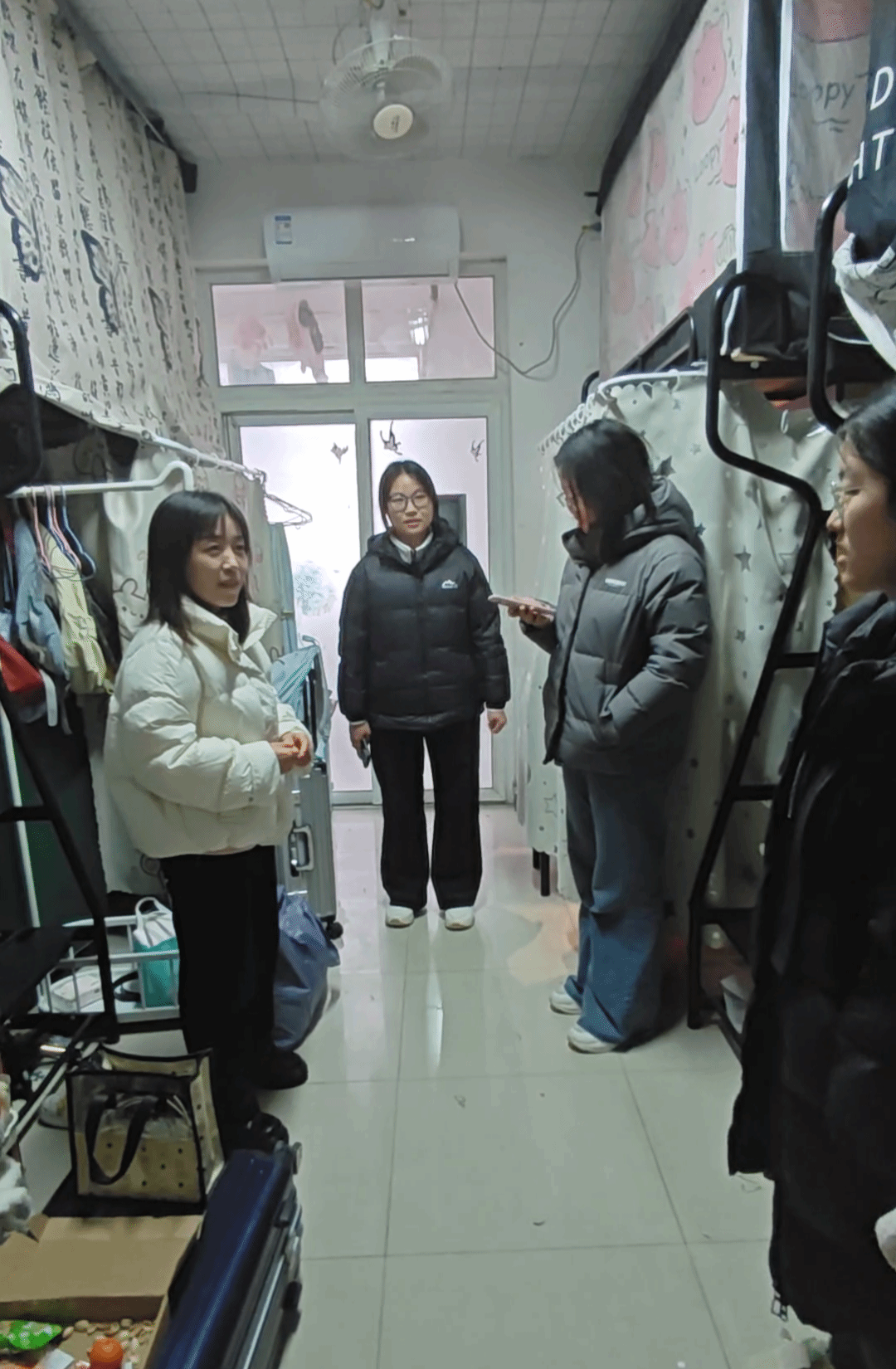 开展入寝普法宣传活动。学院党委副书记张翠华、全体辅导员及学生干部走进学生宿舍,与同学们面对面交流,开展宿舍走访、反诈宣传与安全排查活动。走访过程中,学院领导老师叮嘱同学们要高度重视安全与卫生,围绕人身安全、财物安全、用电安全、人际相处等常见问题,讲解相关法律常识与注意事项。一句句贴心的叮嘱,一次次耐心的解答,将法治关怀送到学生身边,助力同学们在日常起居中绷紧安全之弦,筑牢平安防线。