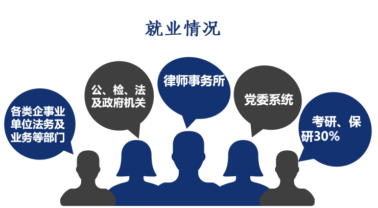 培养目标:本专业培养系统掌握法学专业基本知识、基本理论和基本技能,熟悉党的相关政策,具备较高综合素质,能在党政机关、企事业单位、社会团体和法律服务机构从事法律及其相关工作的高素质复合型卓越法律人才。