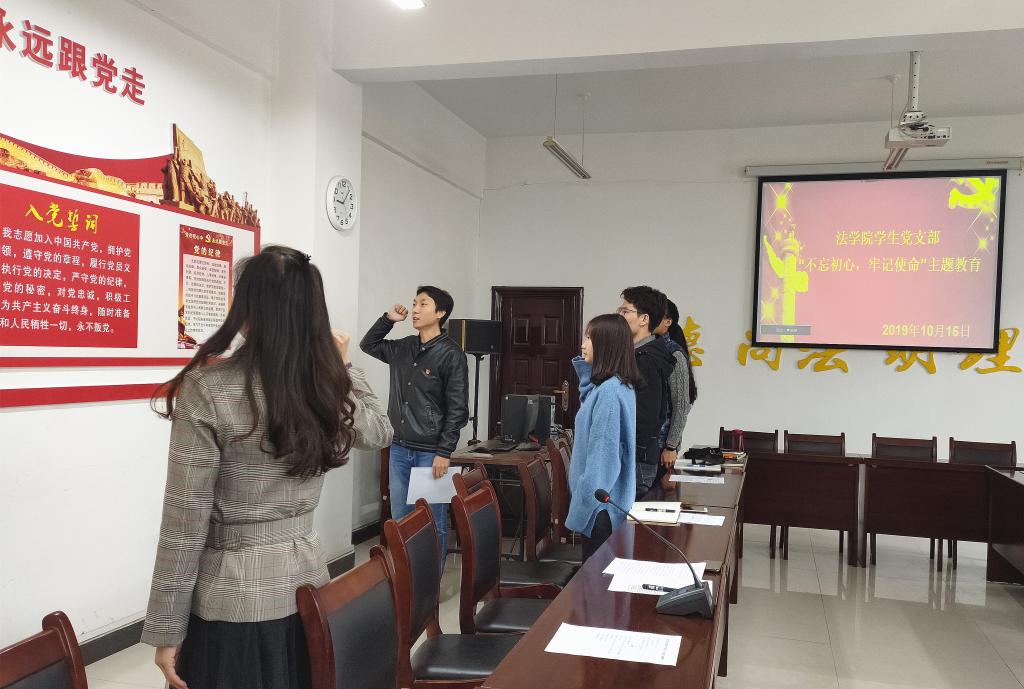 会议首先进行的是重温入党誓词,由学生党支部书记魏杰领誓,全体与会人员面对党旗,高举右拳,庄严宣誓。