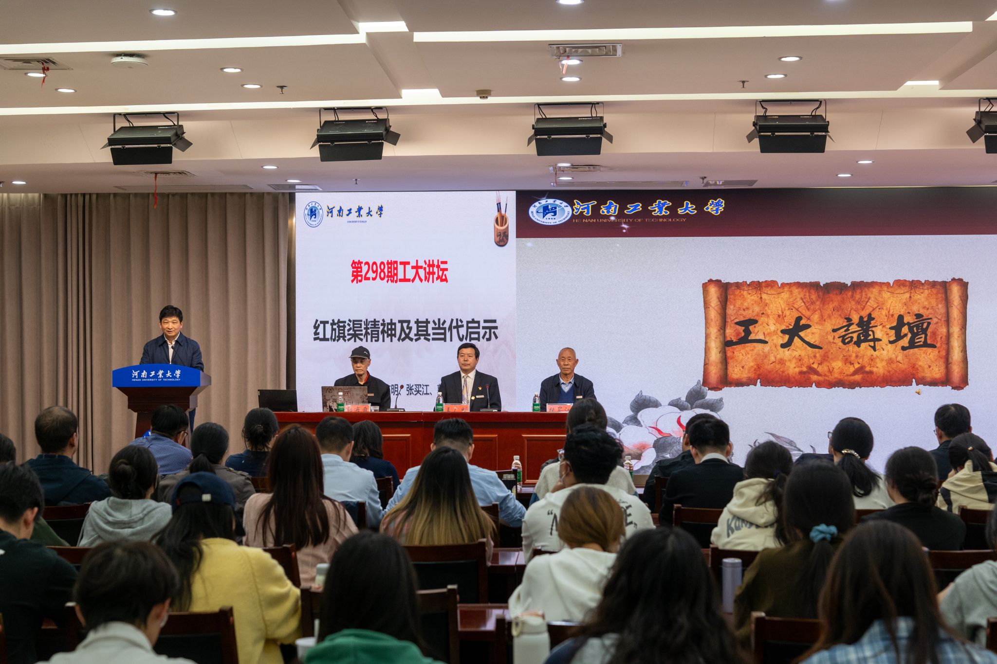 承办的第298期工大讲坛在莲花街校区D205学术报告厅举办。今年是红旗渠通水60周年,由红旗渠建设特等劳动模范张买江、红旗渠藏品博物馆馆长王广明、红旗渠藏品博物馆郭布舜组成的红旗渠精神宣讲团做客工大讲坛。他们以“红旗渠精神及其当代启示”为题,为200余名师生作专题报告。讲坛由色情小说