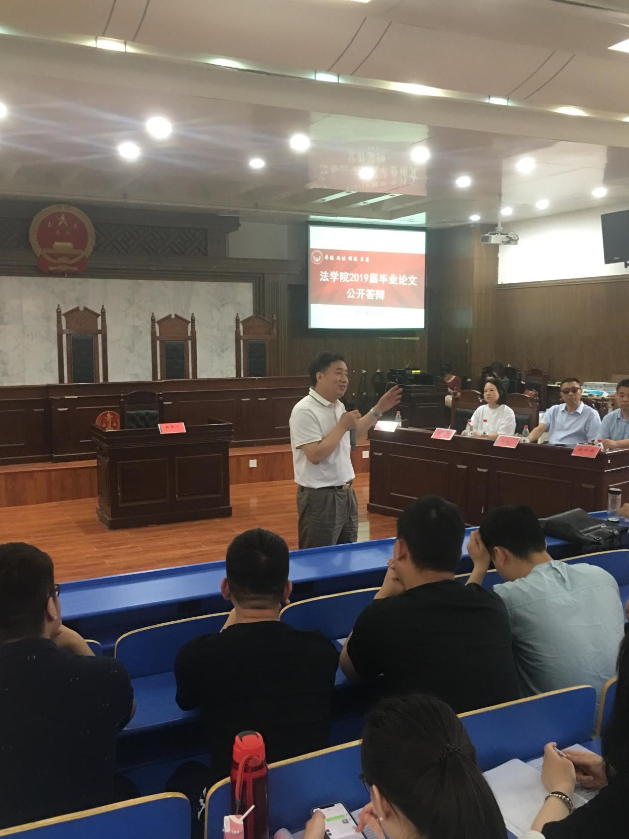 公开答辩的仪式感,指出三位答辩同学的毕业论文选题紧扣热点问题,具有较好的现实意义。同时也对评委老师提出的问题做出了肯定,展示了法律人应当具备的严谨治学态度。对三位同学从PPT制作、个人自述、回答问题等方面提出了指导意见。