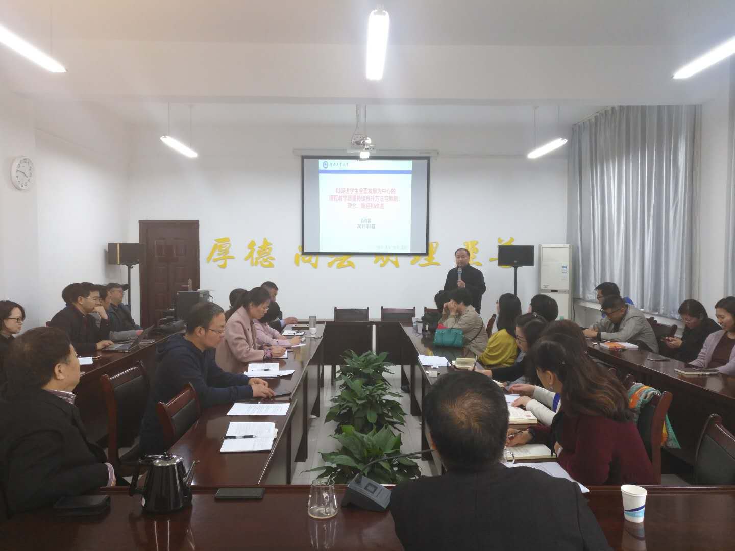 宣讲团成员、新闻学院教学院长李晓云从微观角度以“综合性课程涉及的思考与实践”为主题,结合《品牌学》课程的教学改革实践介绍了课程设计的步骤以及课程执行大纲撰写的关键点,并将其概括归纳为“循序渐进、允许失败、持续改进、寻找快乐”的十六字方略,吁请大家要深刻认识课程建设与改革的重要性,要花时间思考、摸索,并从改革的痛苦中寻找教学的快乐。