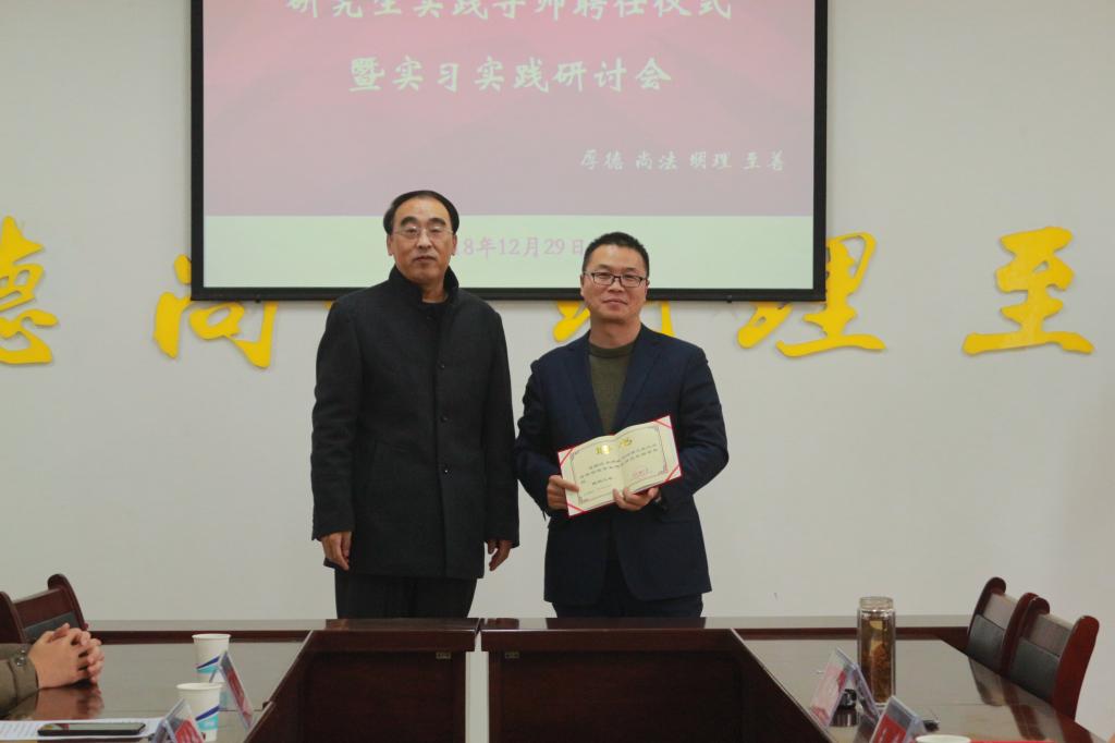 在2018年12月29号正式举行研究生实践导师聘任仪式暨实习实践研讨会,到会的领导和老师有校研究生处处长李永祥,聘任的实践导师为刘学志老师、王峰老师、亢银忠老师、完庆中老师、史焕乾老师。出席本次会议的还有色情小说