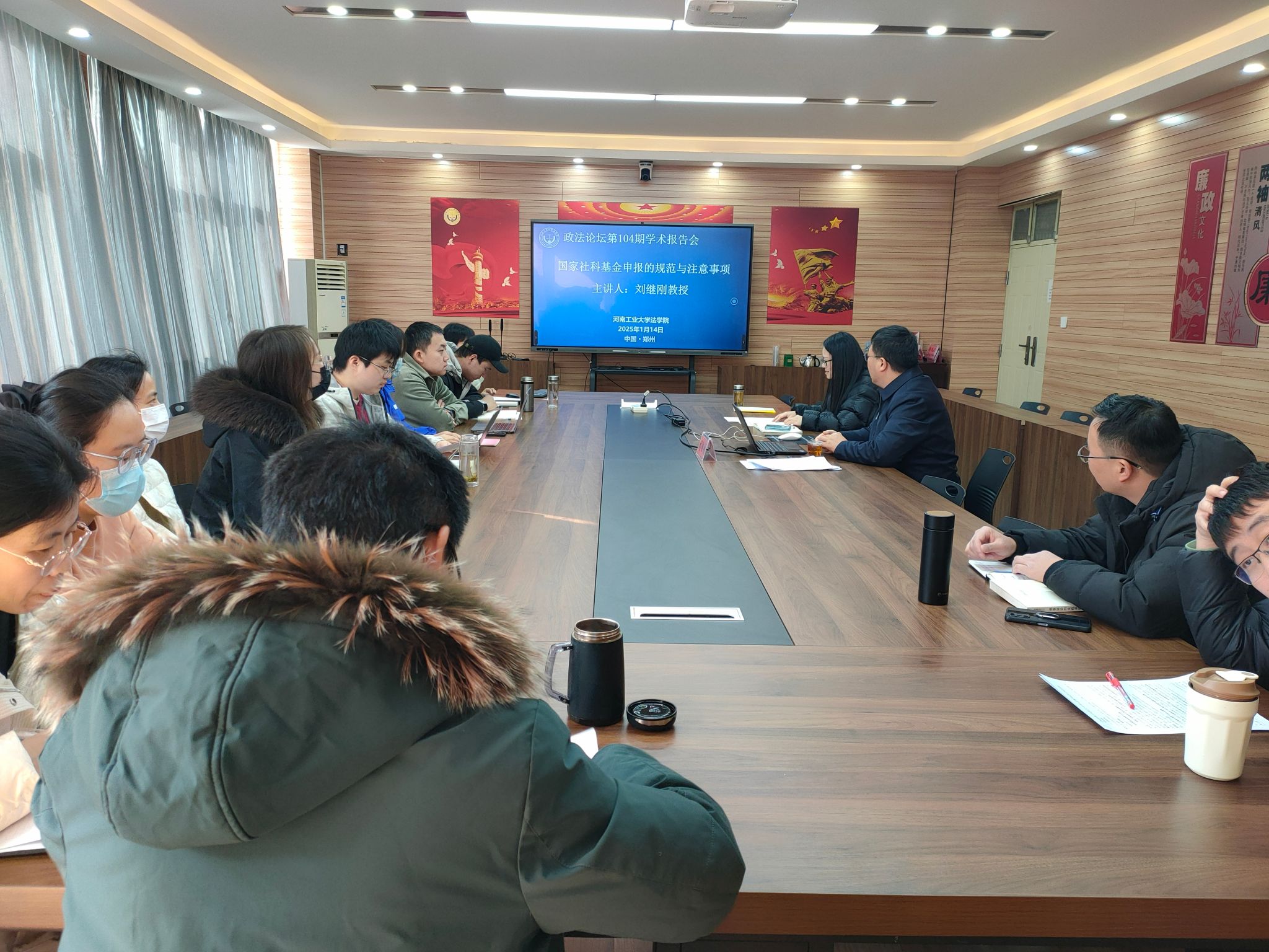 在3424会议室成功举办“政法论坛”第104期学术报告会。河南中医药大学管理学院院长刘继刚教授以“国家社科基金申报的规范与注意事项”为主题开展了一场精彩而丰富的学术报告。报告会由色情小说