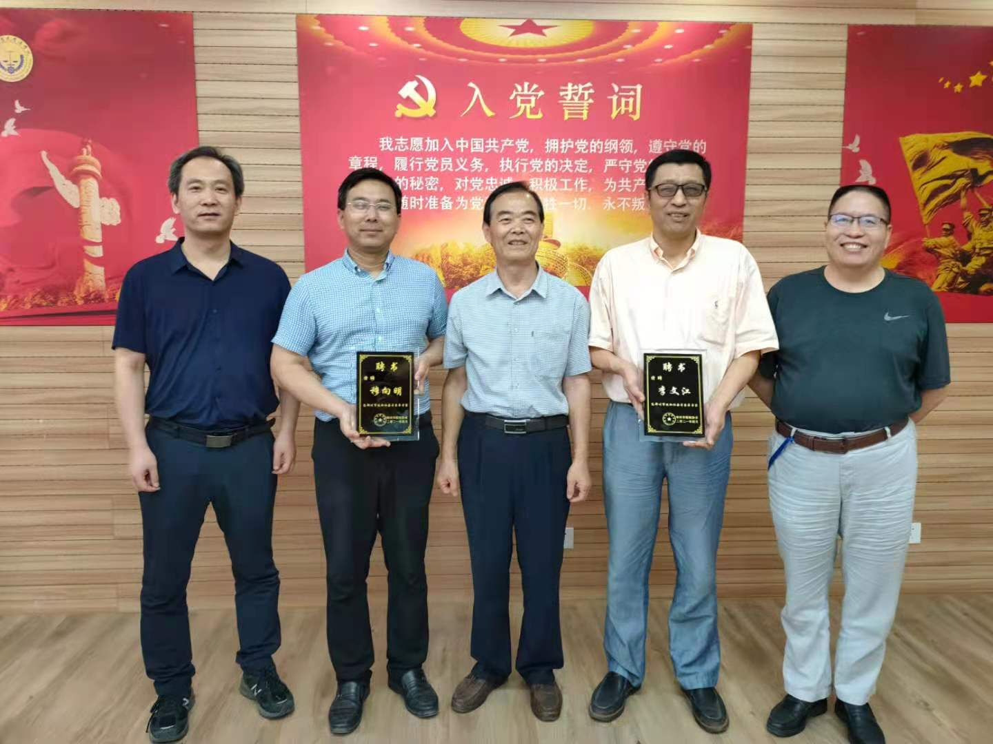 院长张道许代表学院对郑州市版权协会一行的到来表示热烈欢迎,介绍了我院概况以及知识产权学科建设发展举措,表示将大力支持两位教师参与协会工作,发挥学院优势与郑州版权协会扩大合作、增进交流、互促互进,为科技强国、万众创新做出应有贡献。郑州市版权协会理事长倪天礼介绍了郑州版权协会的情况,对我院和专家重视和支持版权工作给予了充分肯定,对李文江、穆向明在版权领域所作的学术研究和积极工作给予高度评价,希望我院与协会以本次专家聘任为契机,进一步加强交流与合作,共同推动版权工作的新发展。李文江、穆向明表示,将继续发挥专业优势,为版权工作建言献策,为版权保护做出贡献。倪天礼为李文江、穆向明两位老师颁发了聘书并合影留念。