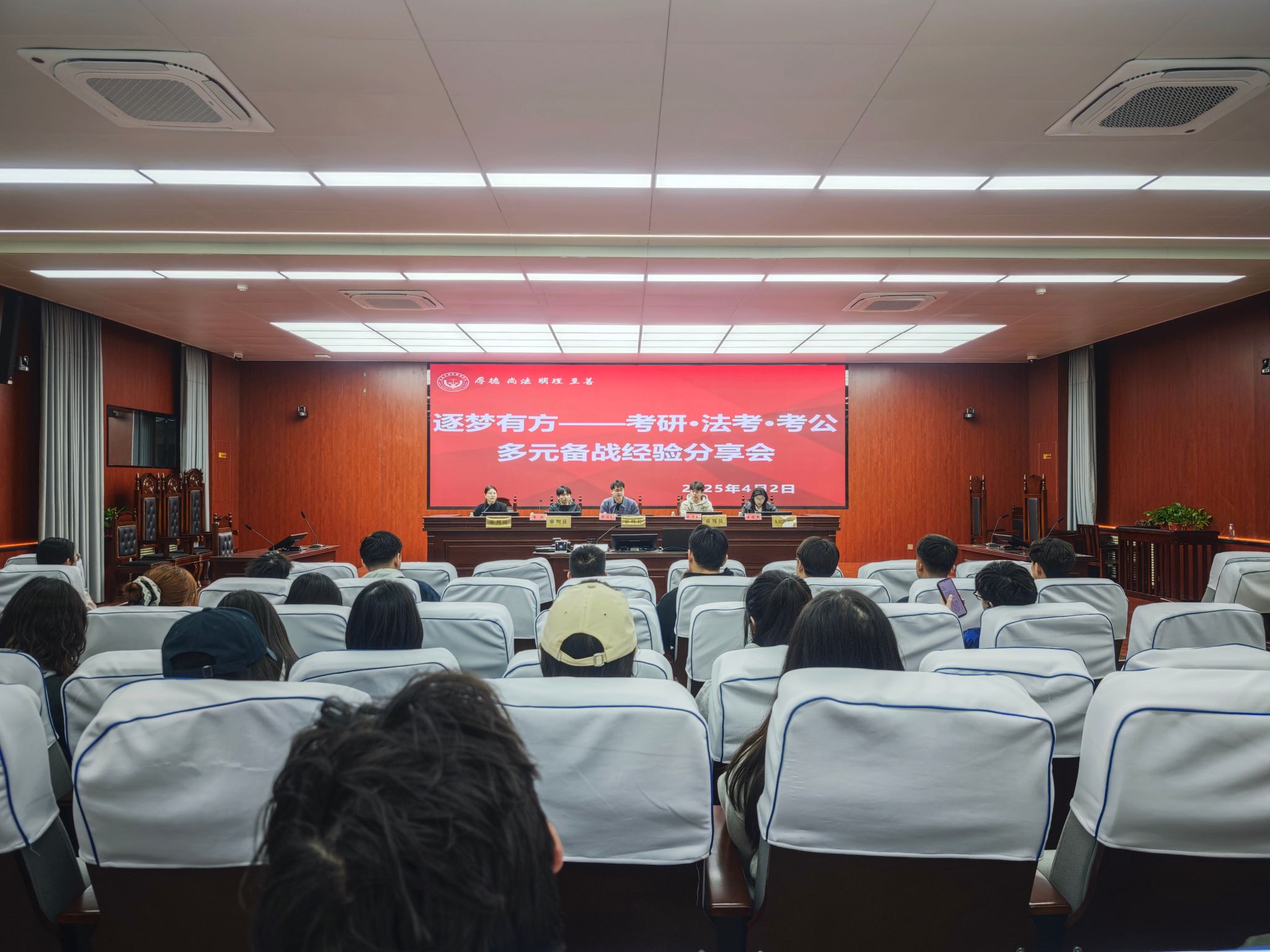 在3121模拟法庭成功举办“逐梦有方——考研·法考·考公多元备战经验分享会”。分享会特邀四位在研究生、法律职业资格及公务员考试中双线上岸的优秀学长学姐担任主讲嘉宾,吸引百余名学子积极参会,现场气氛热烈,互动频繁。分享会由色情小说