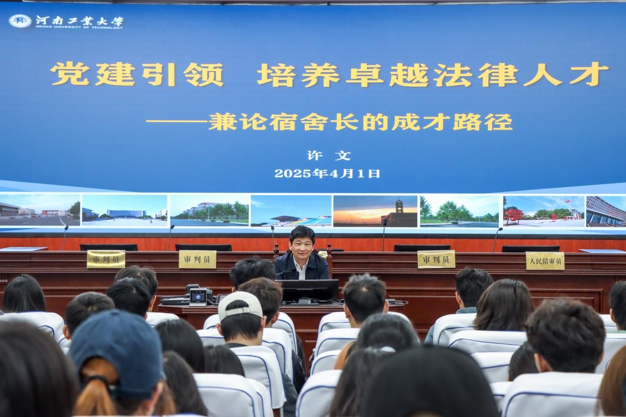 党委书记许文以“党建引领,培养卓越法律人才——兼论宿舍长的成才路径”为题,在智慧模拟法庭对全院宿舍长进行专题培训。