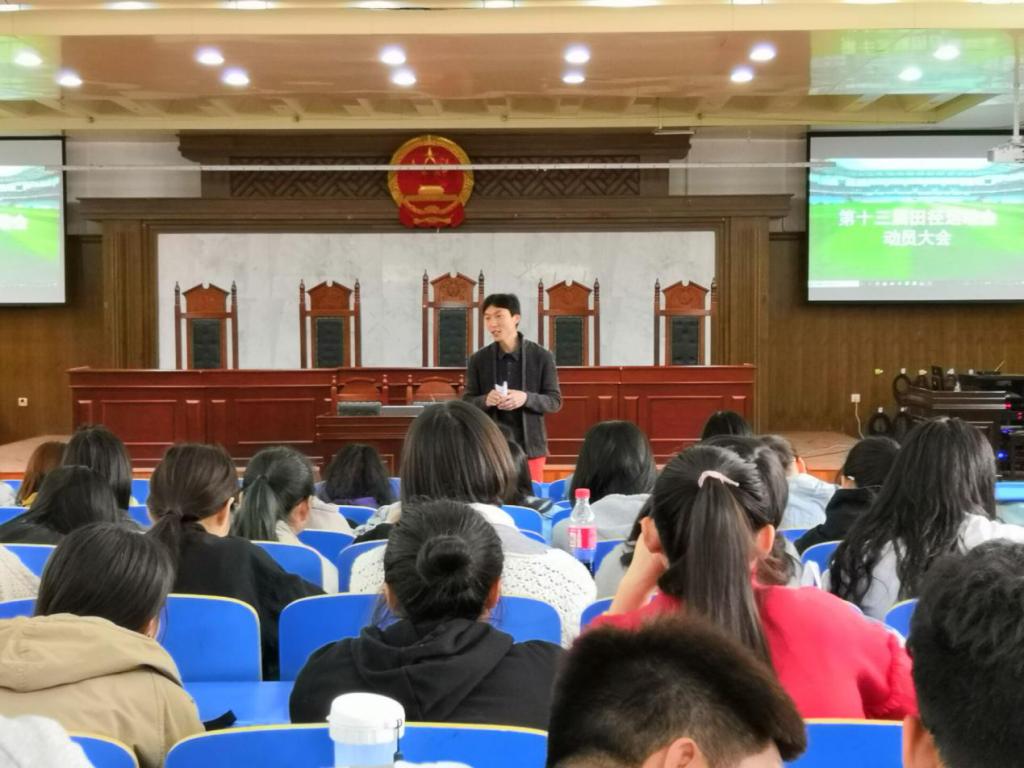 在第十三届校级田径运动会来临之际,为了加深同学们对运动会的了解,激发同学们参赛的热情,我院于3月28日在模拟法庭面向18级全体同学开展了色情小说