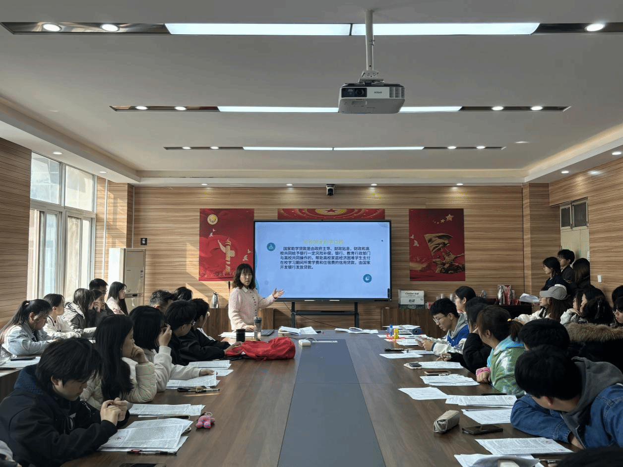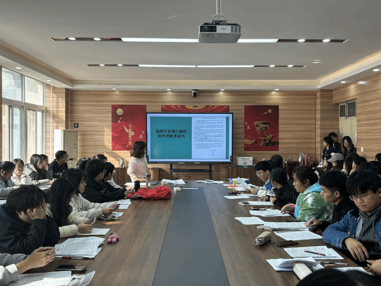 在3424会议室召开2024年国家助学贷款合同签订及诚信教育会议。辅导员周静、资助工作人员及59名高校助学贷款学生参加会议。