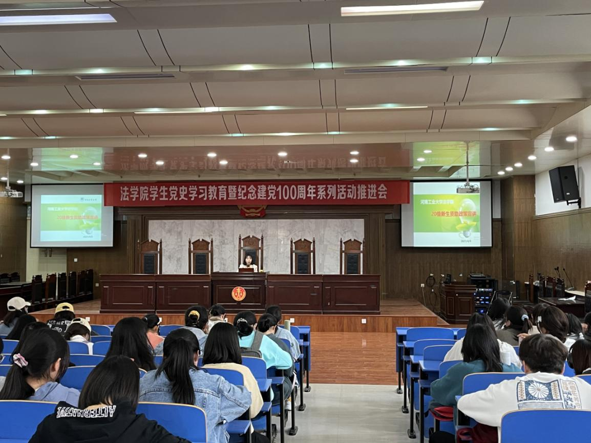 响应学校以及校资助中心的要求,在新模拟法庭为2020级新生作资助政策宣传教育。会议由学工办主任庞文娟主持。