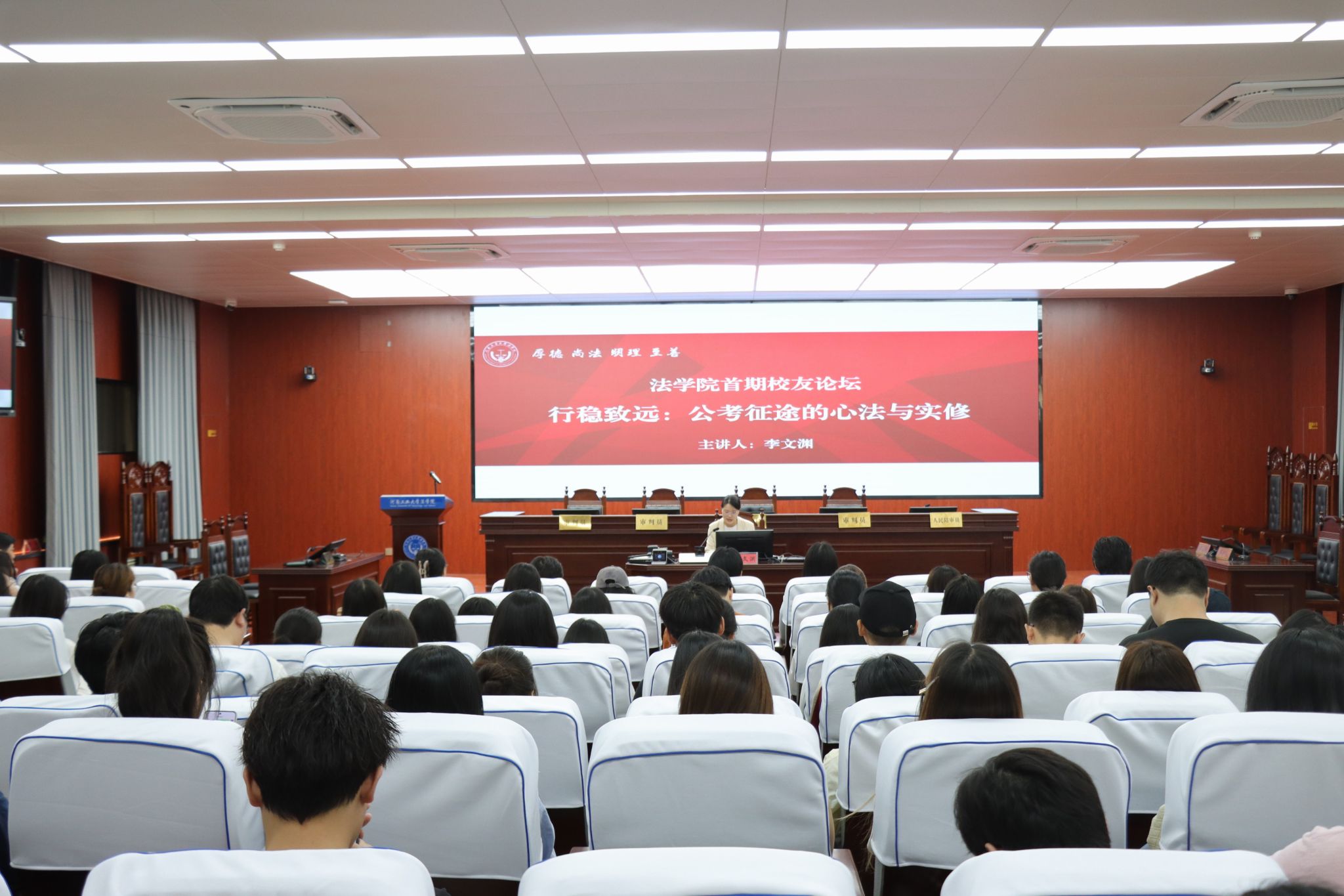 2009届优秀校友,现就职于洛阳市文化广电和旅游局的李文渊分享交流,论坛主题为“行稳致远:公考征途的心法与实修”。学院党委书记许文、党委副书记张翠华、副院长南海燕及150余名学生参加论坛。论坛由许文主持。