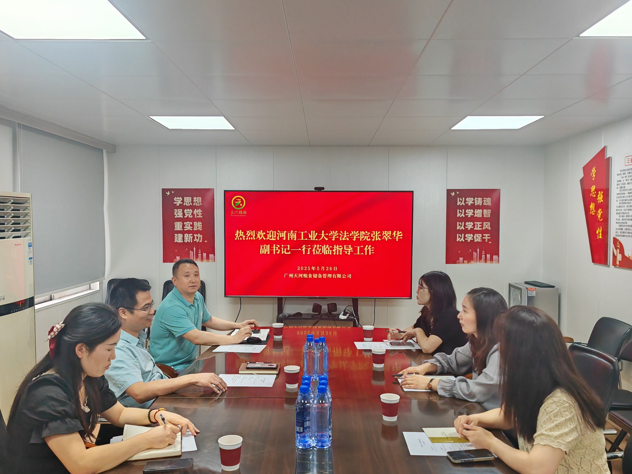 在广州市粮食集团有限公司储备分公司,储备分公司负责人王丽娜介绍了企业的基本情况和业务范围,集团总法律顾问、合规审计部部长苏伟隆详细介绍了法务的需求情况、岗位职责、用人标准等,张翠华介绍了学院在人才培养上的特色做法,强调了“法学+粮食+知识产权”的优势,双方就复合型法律人才的培养进行充分交流。